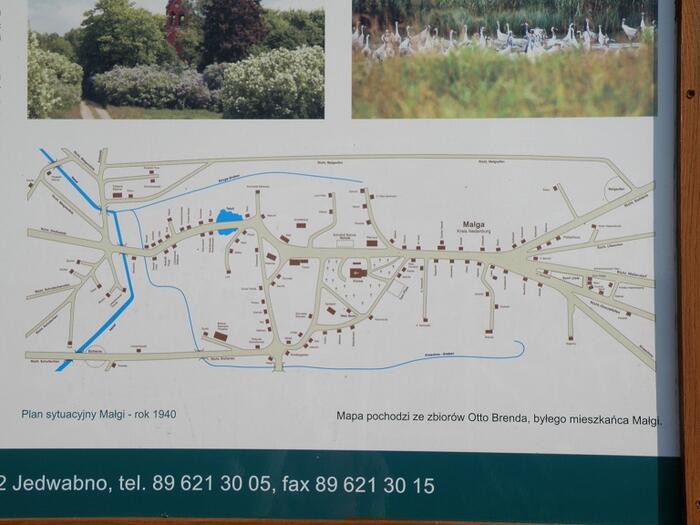 Smutne i przejmujące robi Małga wrażenie. CISZA..... tylko owady bzyczą.... Wszędzie drzewa. A przecież na zdjęciach archiwalnych wyglądało to zupełnie inaczej! Ale 70 lat zrobiło swoje. Natura radzi sobie jak może pochłaniając ostanie ślady ludzkiej pracy. Na początku lat 50-tych mieszkańców Małgi zmuszono do opuszczenia swoich domostw. Większość ocalałej ludności niemieckojęzycznej wyjechała do Niemiec. Reszta – gdzie Bóg da. Nowym włodarzem tych okolic stało się Wojsko Polskie. Do końca lat 80-tych XX wieku był tu poligon. Z całej Małgi ocalała jedynie wieża kościelna – na tym rozległym i stale zarastającym terenie potrzebny był „dozór" dla celowniczych artylerii. Niejeden pocisk wieża dostała... ale stoi... samotny niemy świadek bolesnej historii Mazur . Może następnym razem pokuszę się o zidentyfikowanie ruin domostw. Przed kościołem jest tablica informacyjna z planem z 1940 roku. Każdy dom jest tam zlokalizowany. Oprócz nazwisk czysto niemieckich – także te swojsko brzmiące – Nowak, Napierski, Striewski, Kottowski, Kowalewski,Samoyski – i wiele innych. Ale dla Armii Czerwonej – to byli po prostu Niemcy – na których należało szukać pomsty! I zemsta była zaiste krwawa.