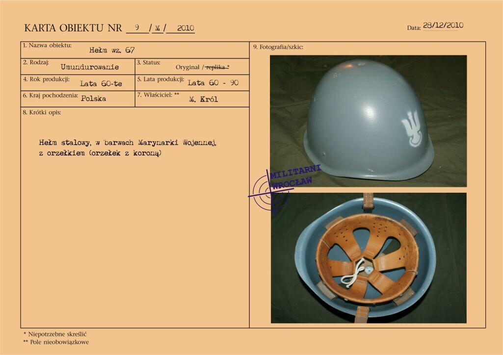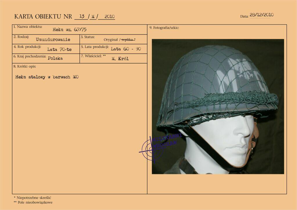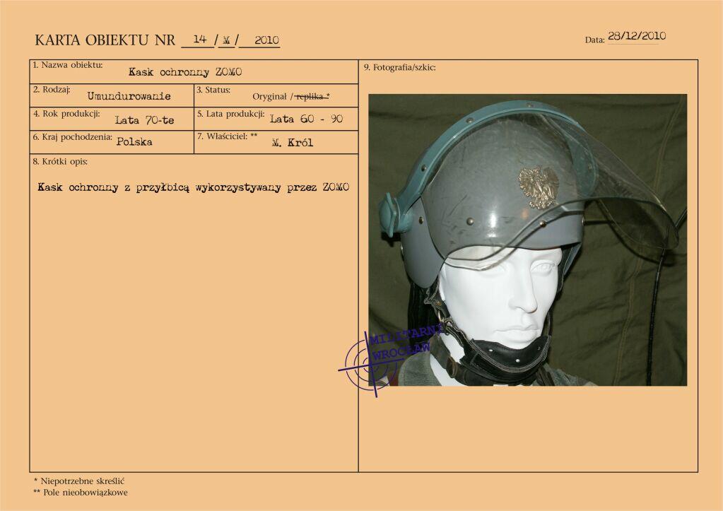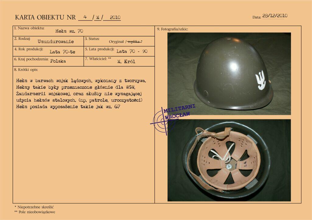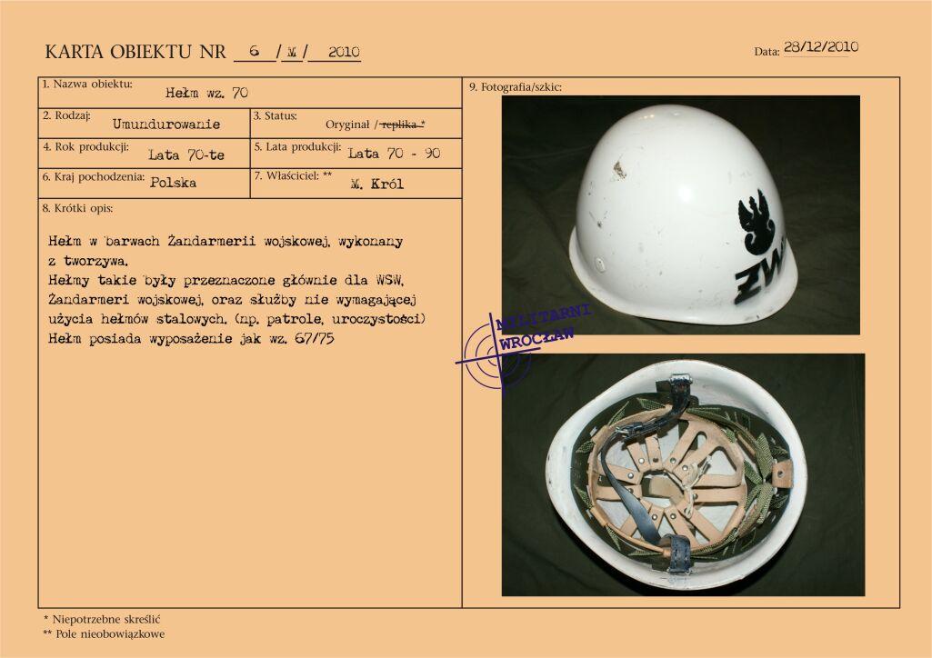 Letni mundur majora Wojskowej Służby Wewnętrznej, z materiału typu „tropik". Na wyłogach munduru oznaki korpusu WSW, przykręcane za pomocą nakrętek. Korpusówka wykonana z metalu oksydowanego. Pierwsze powojenne oznaki korpusu były dosyć niejednolite i występowały w różnej formie. Reforma z początku lat 50-tych wprowadziła oznaki metalowe, wpinane w mundur. Natomiast w wyniku reformy z początku lat 60-tych pojawiły się oznaki z nakrętką, które praktycznie funkcjonowały do końca PRL. Biały otok na czapce garnizonowej.
