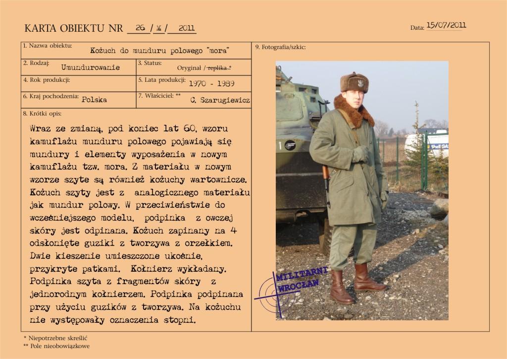 Wraz ze zmianą, pod koniec lat sześćdziesiątych, wzoru kamuflażu munduru polowego pojawiają się mundury i elementy wyposażenia w nowym kamuflażu tzw. mora. Z materiału w nowym wzorze szyte są również kożuchy wartownicze.