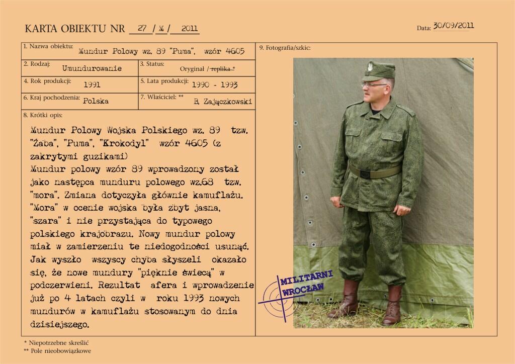 Mundur polowy wzór 89 wprowadzony został jako następca munduru polowego wz.68 – tzw. „mora". Zmiana dotyczyła głównie kamuflażu. „Mora" w ocenie wojska była zbyt jasna, „szara" i nie przystająca do typowego polskiego krajobrazu. Nowy mundur polowy miał w zamierzeniu te niedogodności usunąć.