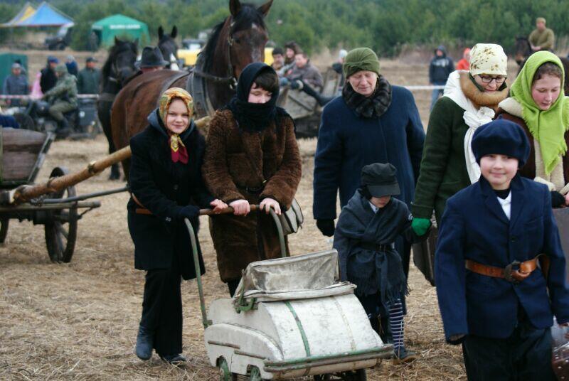 Od strony Namysłowa w kierunku Smarchowic Ślaskich na wozach, albo piechotą uciekają wraz z całym swoim dobytkiem cywile.