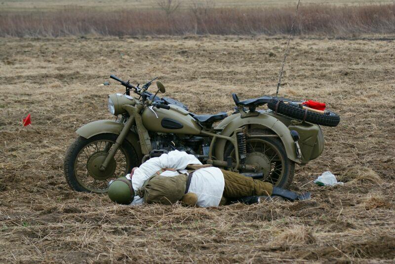 Już po chwili nadjeżdza od strony Namysłowa, na motorze, zwiadowca, który zostaje zastrzelony przez Niemców. Rozpoczyna się bitwa – żołnierz na koniu nawołuje do ataku, rosyjska ciężarówka wjeżdza na pole bitwy, moździerze ostrzeliwują cele, a żołnierze napierają na niemieckie stanowiska obronne. Są zabici i ranni. Sanitariusze i sanitariuszki starają się opatrywać rannych. Cały czas słychać strzały i komendy wojskowe. Po kilku minutach ostatnie wystrzały milkną, a uradowane okrzyki żołnierzy oznajmiają zwycięstwo......