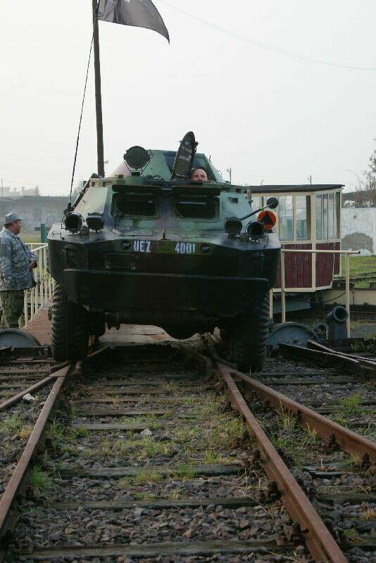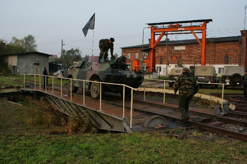 Na koniec festiwalu, można było zobaczyć niecodzienny widok, jakiego w swojej przeszło stuletniej historii parowozownia pewnie nie widziała. Obrotnica, która niegdyś umożliwiała kierowanie parowozów na właściwy tor, tym razem zabrała na swój „pokład" ... transporter opancerzony.