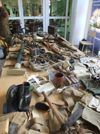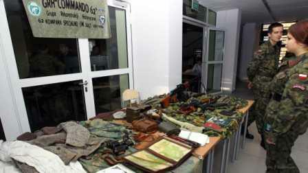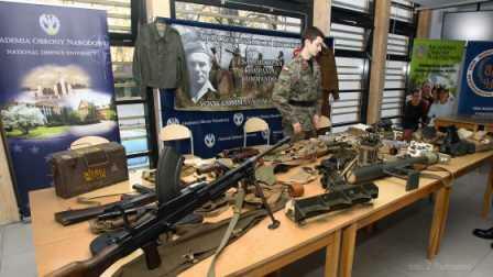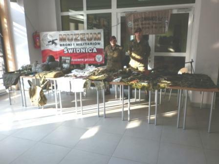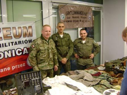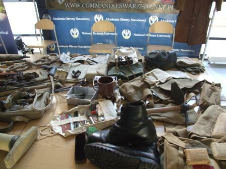 Do stolicy przyjechaliśmy komunikacją publiczną popularnym PKS-em, jako ciekawostkę podam że wbrew pozorom nie jest to drogi i powolny środek transportu. W porównaniu do konkurencji na szynach, autobus jedzie pięć godzin krócej i, co zastanawiające, jest ponad połowę tańszy. Przyjechaliśmy do Warszawy skoro świt, w skromnym dwuosobowym składzie, ale za to wyposażenia mieliśmy na co najmniej czterech komandosów. Z ciekawości po powrocie do Świdnicy pieczołowicie zważyłem wszystko to co zdołaliśmy ze sobą zabrać na ekspozycje i okazało , że mieliśmy tego prawie 100kg! Lekko nie było, ale czego się nie robi ku chwale ojczyzny. Tym bardziej, że cel był chwalebny. Mianowicie przedstawienie młodzieży, studentom i innym zainteresowanym historii i wyposażenia formacji specjalnych, a szczególnie historii 62KS. Na ekspozycji zaprezentowaliśmy oprócz umundurowania z tamtego okresu, radiostację R350, spadochron D5 ułożony do skoku, wyposażenie dywersyjne, drobne wyposażenie osobiste zwiadowców oraz inne pamiątki z tego okresu. Oczywiście nie mogło zabraknąć uzbrojenia, które jak zawsze zostało nam użyczone przez Muzeum Broni i Militariów ze Świdnicy, z broni strzeleckiej przywieźliśmy pistolet TT, pistolet maszynowy RAK, karabinek AKS, karabinek wyborowy SWD, karabin maszynowy RPD oraz oczywiście parę granatów RG 42 i F1. Po szybkim zwiedzaniu stolicy i Muzeum Wojska Polskiego udaliśmy się na Akademię. Tam w holu Klubu AON rozłożyliśmy swoją prezentację, na którą potrzeba było aż dziewięciu stołów. Nasza prezentacja spotkała się z dużym zainteresowaniem ze strony studentów oraz uznaniem ze strony wojskowych, z których cześć jeszcze pamięta rekonstruowane przez nas czasy. Przy okazji wymieniliśmy nasze doświadczenia z użytkowania sprzętu i posłuchaliśmy anegdot.
