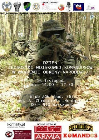 Dnia 16 listopada 2011 roku w Klubie Akademii Obrony Narodowej obchodzono „Dzień Jednostki Wojskowej Komandosów". Inicjatorami spotkania byli studenci Sekcji Strategiczno - Obronnej koła naukowego Studentów Bezpieczeństwa Narodowego AON we współpracy z Jednostką Wojskową Komandosów. Genezą spotkania była chęć przybliżenia podstawowych informacji z zakresu działań specjalnych realizowanych przez JWK, a także rys historyczny polskich działań specjalnych.