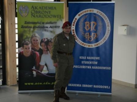 Główna cześć spotkania poświęcona była JW. Komandosów, ale tytułem wstępu zaprezentowano historię i tradycje wojsk specjalnych, w tym zakresie referat wygłosił dr Roman Kwećka z Wydziału Bezpieczeństwa Narodowego AON. Następnie o czasach współczesnych i aktualnych wyzwaniach sił specjalnych mówił zastępca Dowódcy WS, były dowódca jednostki GROM płk Jerzy Gut. W mojej ocenie jednak najciekawszym i najlepiej poprowadzonym wykładem było wystąpienie zastępcy Dowódcy JW Komandosów, ppłk Sławomira Drumowicza. Jego wystąpienie dotyczyło głównie możliwości współdziałania jednostek regularnych z siłami specjalnymi podczas misji poza granicami kraju. Można było się również dowiedzieć do jakich zadań JWK jest przygotowana oraz jakie szkolenia przechodzą żołnierze. Wystąpienie ppłk. Drumowicza doskonale uzupełniała ciekawa prezentacja sprzętu i wyposażenia JWK, która znajdowała się podobnie jak nasza w holu klubu AON. Tam też u pozostałych żołnierzy z Lublińca można było zasięgnąć informacji na temat warunków służby w jednostce oraz zasady naboru i selekcji.