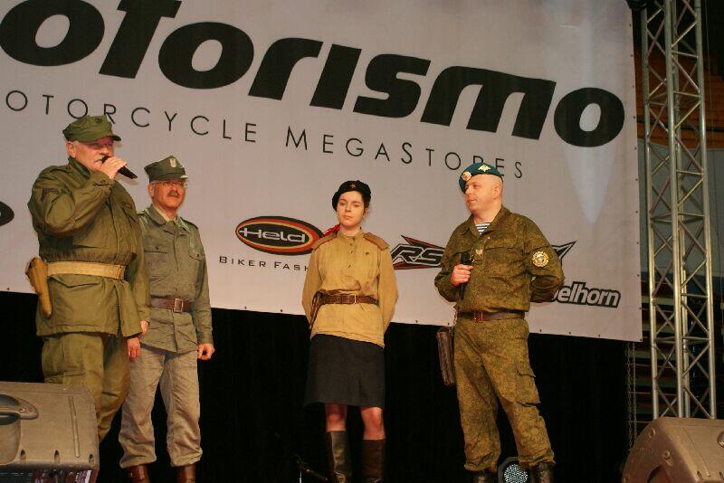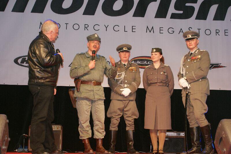 Nareszcie! Pierwsza we Wrocławiu impreza o charakterze rekonstrukcyjnym, którą mieliśmy niewątpliwy zaszczyt i przyjemność współorganizować, stała się faktem. Prezentacja towarzyszyła Targom Motocyklowym „Wrocław Motorcycle Show 2012", zorganizowanych przez INTER-TARK Wojciech Kleszczewski i firmę GEKON, w Hali Stulecia. Piątkowe popołudnie i sobotni poranek zaproszeni przez nas goście i my, spędziliśmy nader pracowicie, budując z zapałem i zaangażowaniem nasze dioramy, pozwalające poczuć klimat odtwarzanych wydarzeń i epoki. Tuż obok siebie powstawały obozowiska i polowe sztaby Armii Czerwonej, zgliszcza zniszczonych domostw ze stacjonującymi w nich oddziałami niemieckimi, umocnienia oddziałów wrześniowych Armii Polskiej, poligon LWP, posterunki wojsk NRD z murem berlińskim, radziecka baza w Afganistanie, rosyjski Pułk Specnazu, stanowiska wojów, wikingów z wczesnego średniowiecza, odział rodem z amerykańskiej wojny secesyjnej czy wreszcie współczesna baza US Marines oraz stanowisko Wrocławskiego Stowarzyszenia Fortyfikacyjnego. Całości dopełniały doskonale, jak zwykle, utrzymane i zaprezentowane pojazdy wojskowe. Wśród dioram podziwiać można było NSU-Kettenkrad, BRDM-2, GAZ-69AM, BTR-40, GAZ-69M, Trabant Kübel/Tramp, Barkas, Dodge ¾, Dodge sanitarka, Dodge trzyosiowa, UAZ -31512, GMC, Willys MB, Willys M38, GAZ-67 Czapajew, Gaz -63, Volkswagen 181, motocykle K-750, M-72, Ural. No i oczywiście niewątpliwa perełka – wspaniale odrestaurowana Warszawa M-20. Nie sposób oczywiście nie wspomnieć o imprezie, której towarzyszyła nasza wystawa, czyli o „Wrocław Motorcycle Show". We wnętrzu Hali Stulecia prezentowali się wystawcy związani z branżą motocyklową – producenci motocykli, odzieży i akcesoriów motocyklowych, szkoły nauki jazdy i kolekcjonerzy motocykli zabytkowych. Zwłaszcza te ostatnie wzbudzały zachwyt i podziw zwiedzających, tym bardziej że niektórzy kolekcjonerzy pokazali zasoby swoich „muzeów" po raz pierwszy. A można było oglądać unikaty w skali europejskiej. Współczesne konstrukcje też uwodzą designem, wyrafinowaną techniką oraz niebotycznymi osiągami i przyciągają liczne grono miłośników jazdy na dwóch kółkach (lub na jednym - jak kto woli). A jeśli mowa o jeżdżeniu na jednym kole, to na zewnątrz odbywały się pokazy jazdy ekstremalnej na motocyklach, w wykonaniu kierowców o iście kaskaderskich i cyrkowych wręcz umiejętnościach. W niedzielę mogliśmy też oglądać na placu zewnętrznym pokaz 58 New York Volunteers Regiment zakończony oddaniem kilku salw z broni czarnoprochowej. Przez dwa dni targów, przez Halę przelały się tłumy zwiedzających, zainteresowanie, zatem było ogromne.