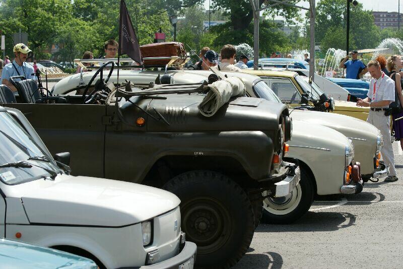 Można było obejrzeć pięknie utrzymane samochody, produkty zarówno rodzimej motoryzacji, jak i innych tak zwanych „demoludów". Na placu królowały Fiaty 125p – „kredensy", Fiaty 126p „maluchy" lub jak kto woli „kaszlaki" i poczciwe Syrenki dawniej nazywane złośliwie – „skarpeta", ale były też Polonezy „Borewicze" , błękitna piękność - Warszawa „garbuska", czeskie Skoda i Jawa, radziecka Wołga i sporo innych, których nie wymieniłem. Wszystkie wychuchane i wygłaskane, a niektóre przystrojone w dodające uroku akcesoria z epoki. Mnie osobiście ogromnie cieszy, że te pogardzane do niedawna relikty PRL, zyskują coraz większą popularność i coraz większe grono miłośników, którzy potrafią o nie zadbać, a często ratują je przed złomowaniem. Dzięki nim możemy je podziwiać na zlotach takich jak ten.