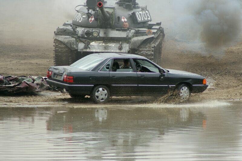 A wcześniej atrakcji też było co niemiara: lądowanie skoczków spadochronowych, przechwytywanie szpiegów, tank Crash i „taplania" pojazdów wojskowych w Winowskiej „kałuży". Do tego wszystkiego, przez trzy dni przejażdżki po poligonie, zabawy i rozmowy do białego rana ...Wiele atrakcji w tak krótkim czasie (bo co to są trzy dni ;) ) zapewnili nam organizatorzy Tarczy 2012.