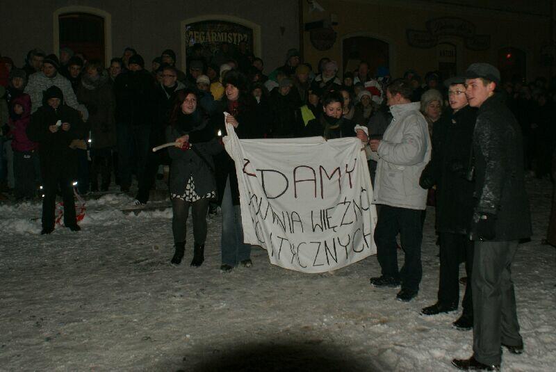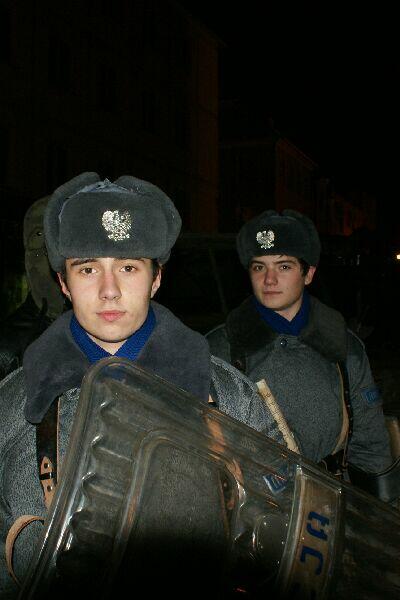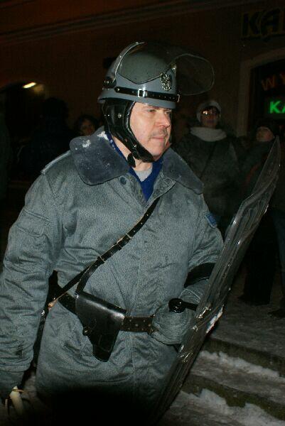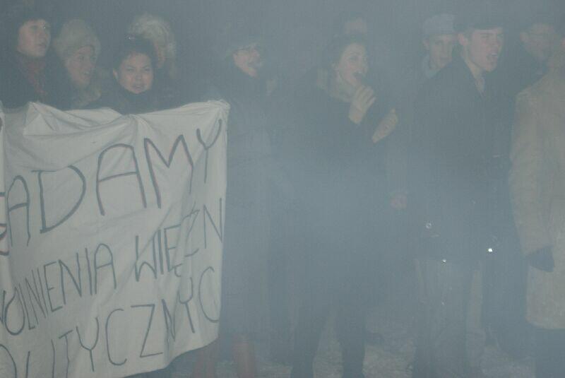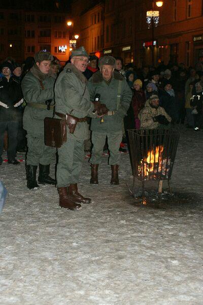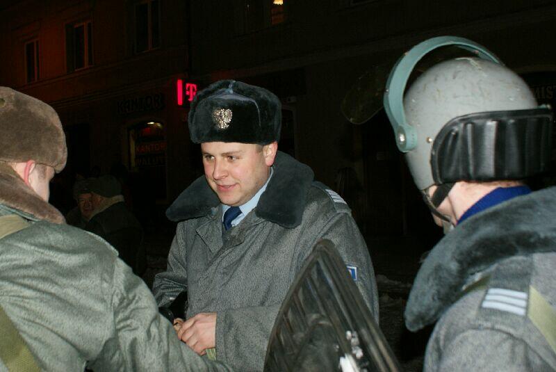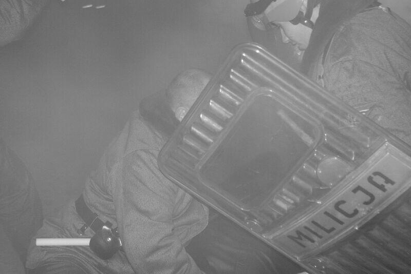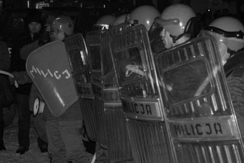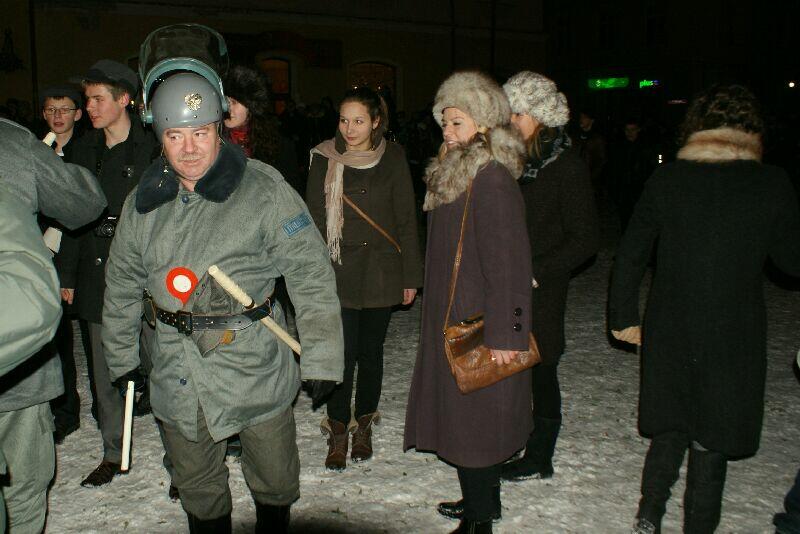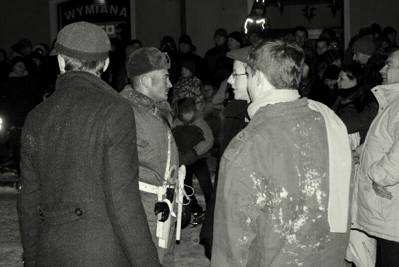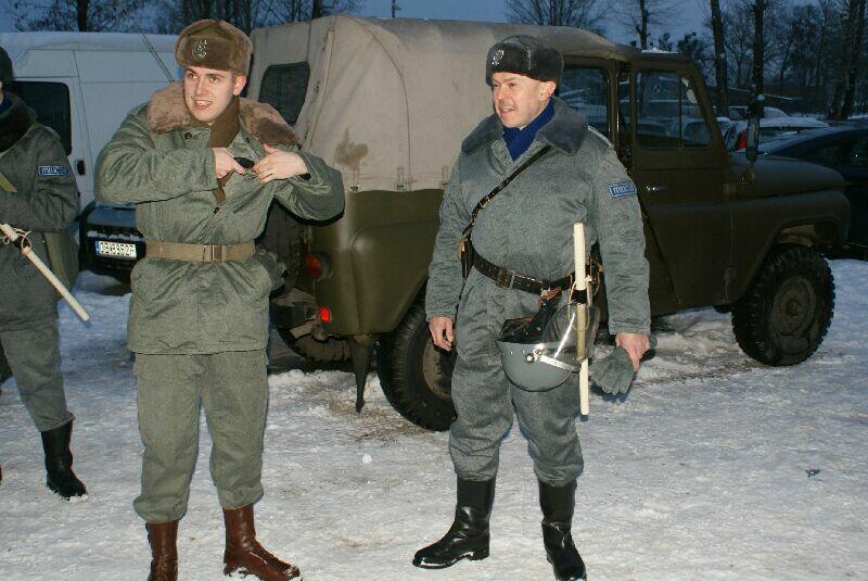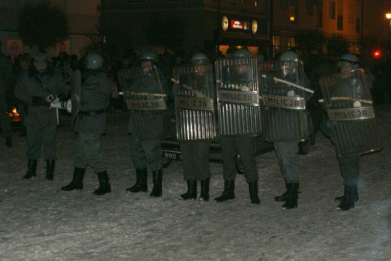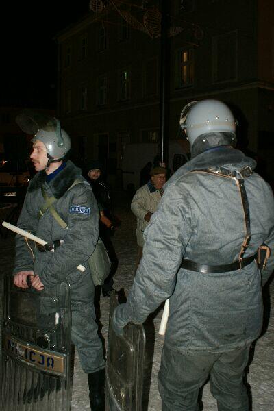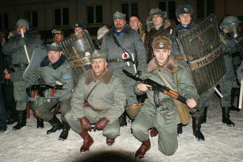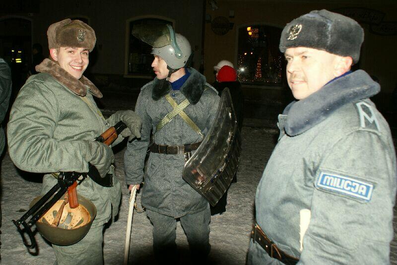 Wszystko dobre, co się dobrze kończy. Na koniec wspólne pamiątkowe zdjęcie uczestników z obu stron barykady – w końcu to tylko przedstawienie, rekonstrukcja historyczna. Dobrze, że tego typu imprezy cieszą się coraz większą popularnością – o historii trzeba pamiętać, także o tej trudnej. Dla tych, którzy przeżyli tamte dni, to wspomnienia, częściowo zatarte przez czas - przez to mniej bolesne, dla młodych to okazja by zobaczyć namiastkę czegoś, co znają tylko z opowiadań i książek. Choć rocznica wprowadzenia stanu wojennego to sprawa w zasadzie polityczna, tym nie mniej dziwi demonstracja młodych, bardzo młodych „anarchistów", którzy postanowili przy tej okazji zaprotestować. Przeciwko historii, przeciwko przedstawieniu, przeciwko zimie? Nie wiadomo...