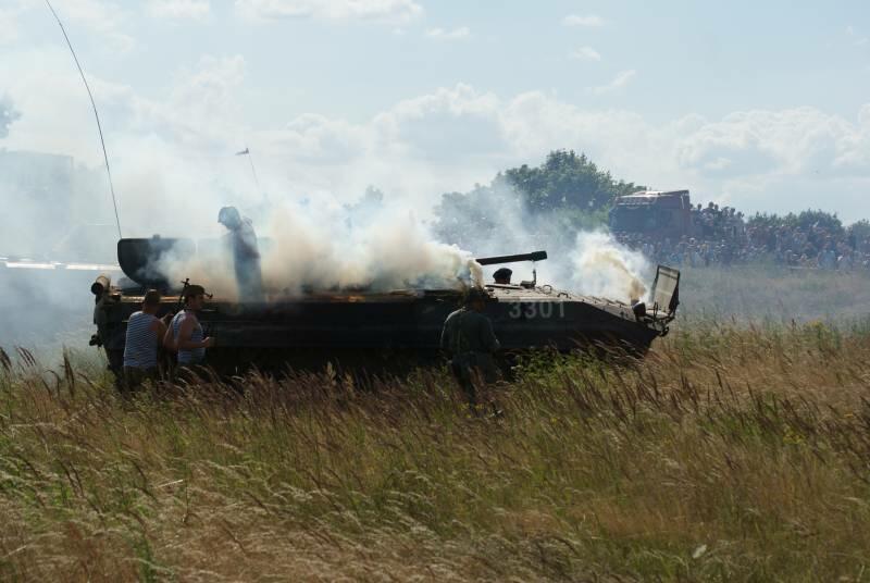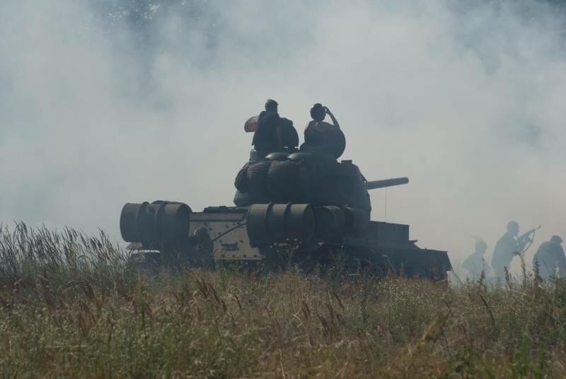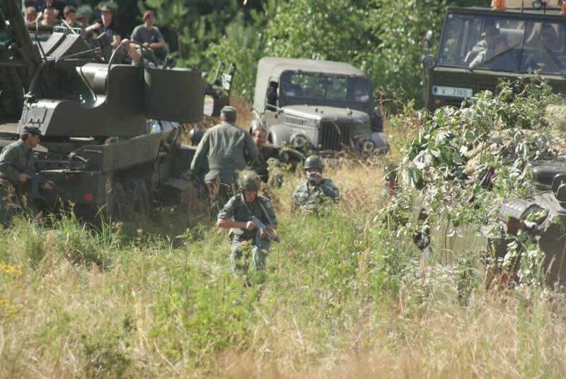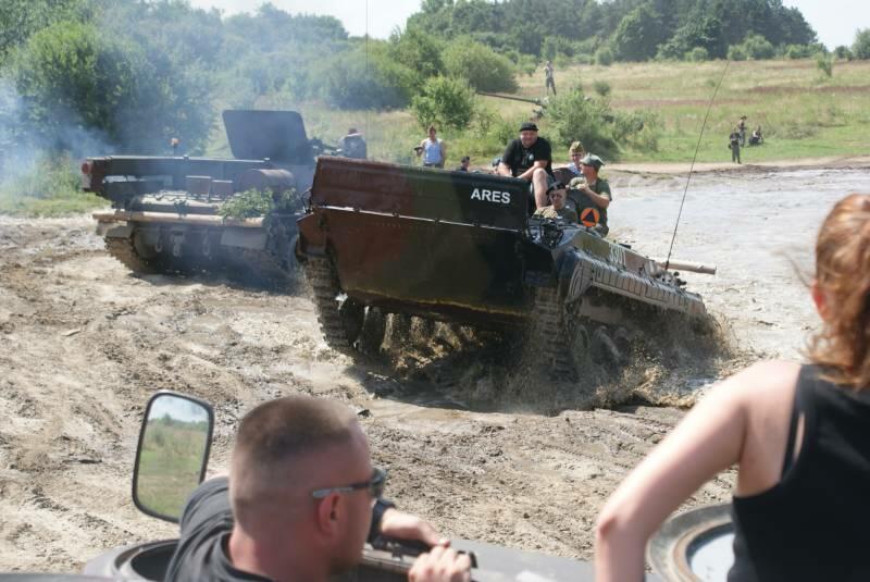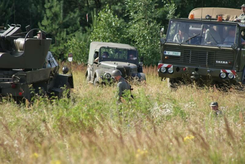 Nadszedł w końcu czwartek. W oczekiwaniu na spotkanie z przygodą wyruszyliśmy w kierunku Winowa. Rozbiliśmy się na z góry upatrzonym i zarezerwowanym od lat kawałku poligonu, gdzie na czas Tarczy 2013 zamieszkało ponad 40 osób. Po rozbiciu namiotów, wyciągnięciu sprzętu rozpoczął się czas n a spotkania, wymianę poglądów, przejażdżki pojazdami. Było dużo rzeczy do oglądania i jeszcze więcej do przegadania, bo jak co roku do Winowa przyjechało wielu pasjonatów historii wojskowości z Czech i Polski. Park maszynowy robił duże wrażenie, a i poszczególne Grupy przygotowały się pod względem „mundurowym" wspaniale.