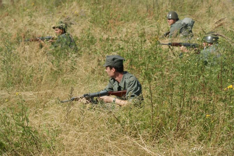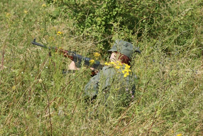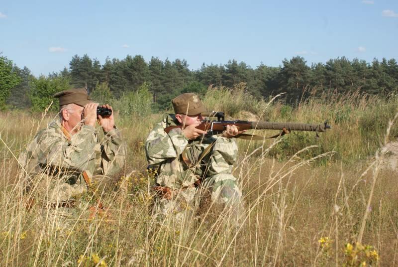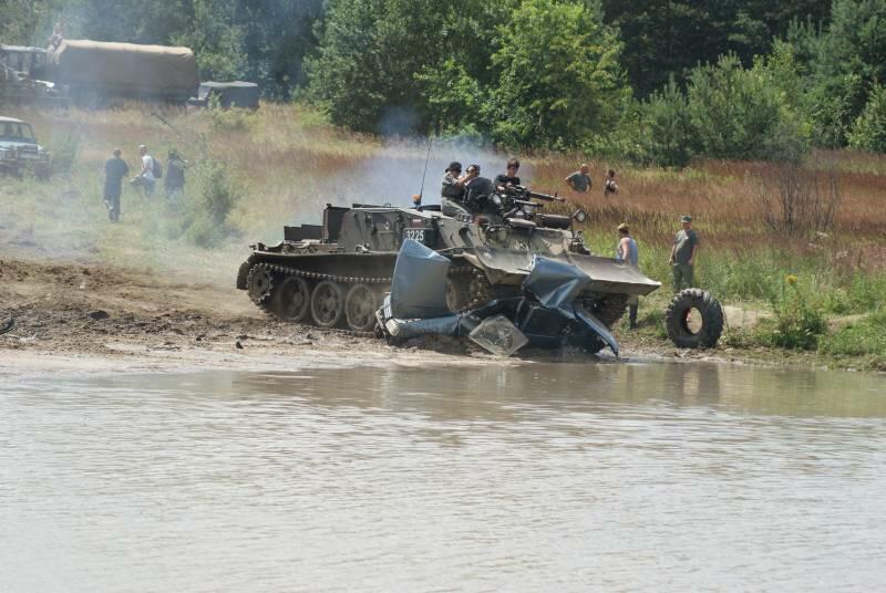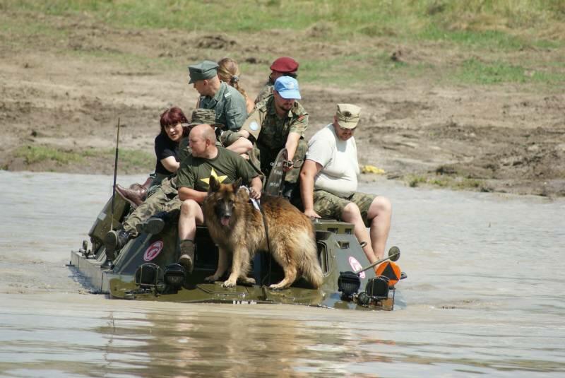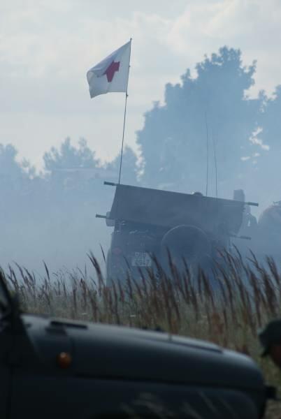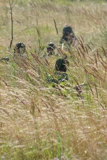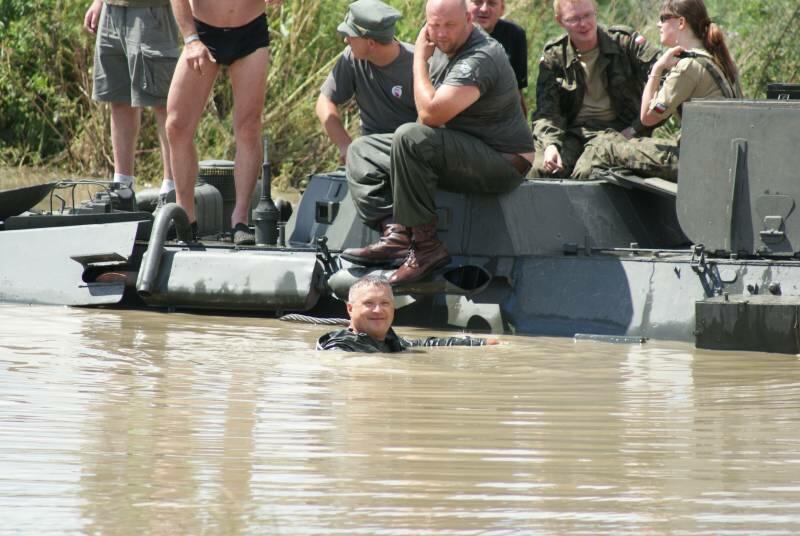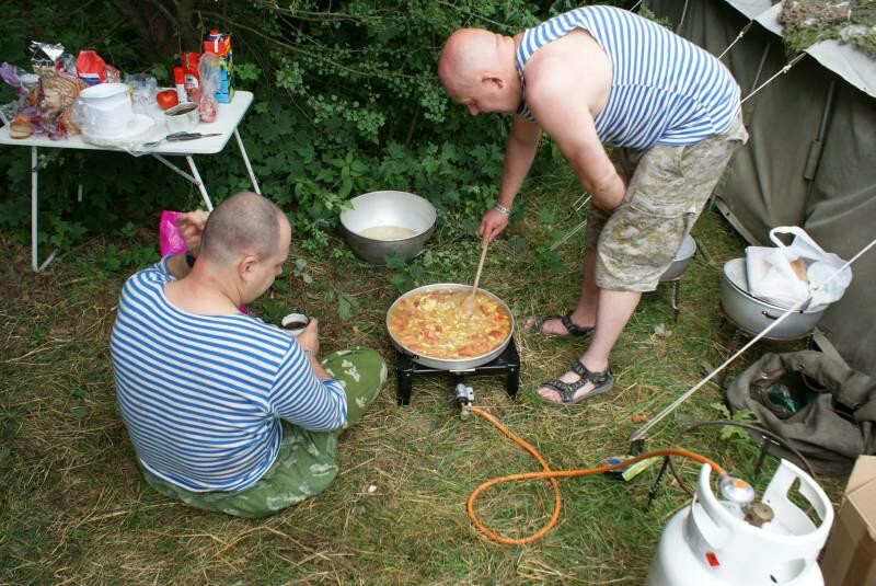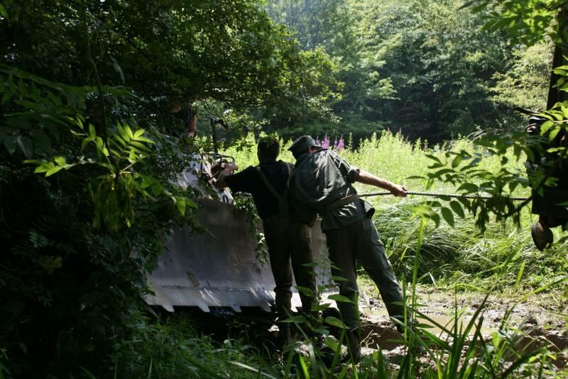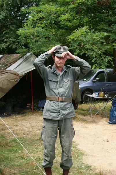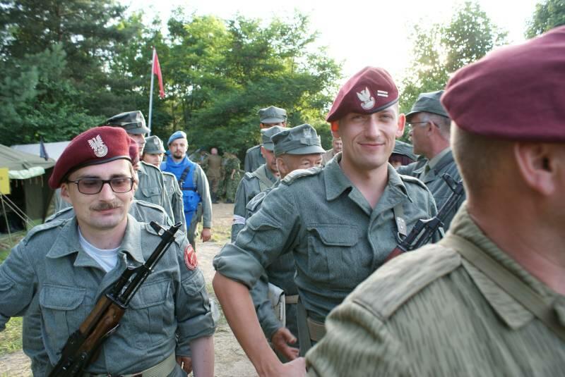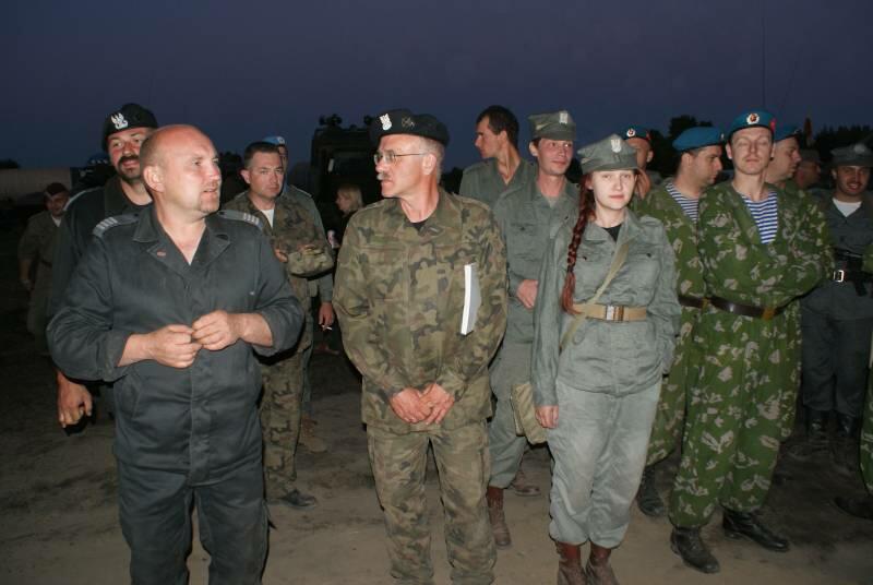 Oczywiście też ciężko pracowaliśmy ;) . Jacek ciągle coś „grzebał" w BRDMie, ROSOMAKI robiły ćwiczenia polowe, Bodek, Michał i Czarek robili sesje zdjęciowe w mundurach, w plenerze, Hightower zdobywał szlify na Uazie pod okiem Maćka, patrolowano teren w mundurach, sprawdzano właściwości bojowe BRDMa, a Dawid zbierał kolejne rzeczy do kolekcji. Pod wodzą Kazia gotował się obiad w kotłach i prawie każdy miał przydziałowe 15 minut obierania kartofli lub mieszania potrawy. Asia z Krisem nie dość że załapali się na obieranie ziemniaków, to ich niedzielny, krótki postój w okolicach kuchni polowej, skończył się przydziałowym myciem kotłów - oczywiście „na ochotnika" ...