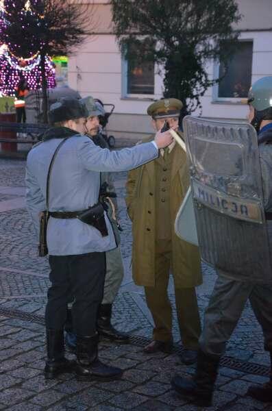 W tym roku nie było trzaskającego mrozu, nie było zasypanych śniegiem białych chodników, nie było dzieci na sankach, czy z łyżwami w ręku spieszących się na przyszkolne lodowisko… Był za to koksownik, przechodnie ze „zdobycznym” papierem toaletowym, działacz w kasku spieszący się na odprawę, student roznoszący ulotki, para z wózkiem na spacerze i przechodnie myślący o zbliżających się Świętach …. Były patrole Milicji Obywatelskiej, zatrzymania, przeszukania… Był także transporter opancerzony, wojskowy uaz, milicyjny radiowóz, a także żołnierze, milicjanci, a gdy zaczęły się zamieszki do akcji wkroczyły także oddziały ZOMO …