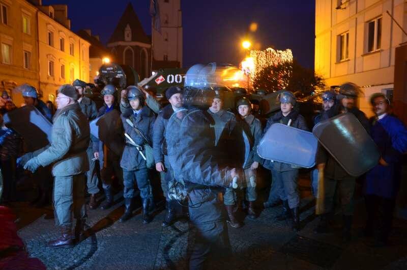 Na szczęście, tym razem była to tylko żywa lekcja historii, jaka miała miejsce na oleśnickim Rynku 13 grudnia bieżącego roku. Mieszkańcy Oleśnicy dzięki rekonstruktorom ze swojego miasta (Oleśnickie Stowarzyszenie Żywej Historii „Arma”), jak i Wrocławia (GRH MSW Wrocław, Militarni Wrocław), Gostynia (KG MO 44/90) i Złotoryi (Stowarzyszenia Przyjaciół Złotoryi AUREUS MONS), mogli zobaczyć wycinek historii lat osiemdziesiątych. Jak zawsze była dynamiczna prezentacja, po której można było oglądnąć dioramę historyczną, porozmawiać z rekonstruktorami, przymierzyć część wyposażenia, wdrapać się na BRDM-a, zasiąść za kierownicę UAZA.