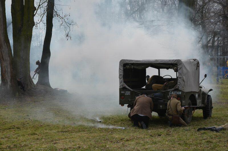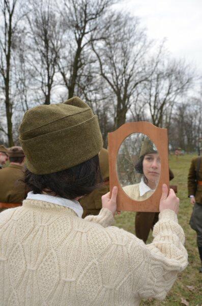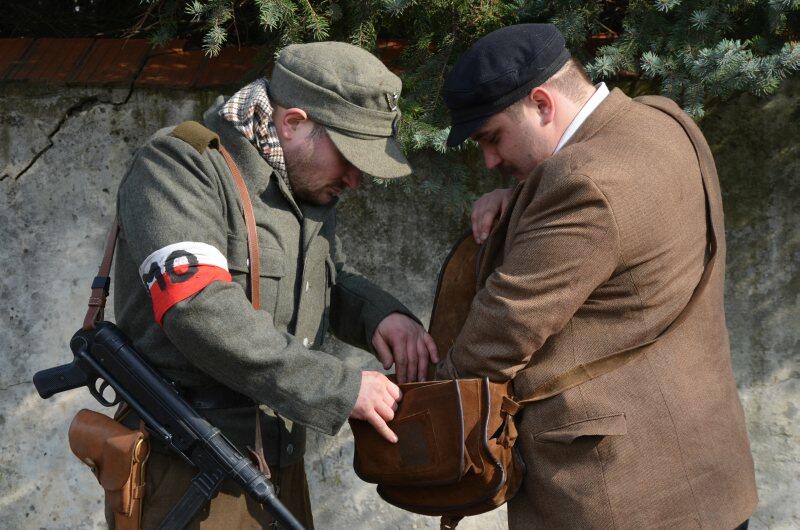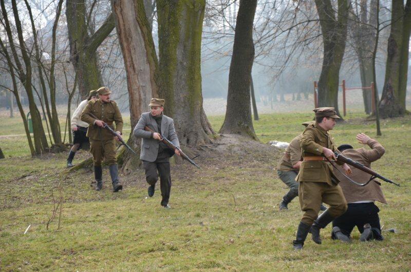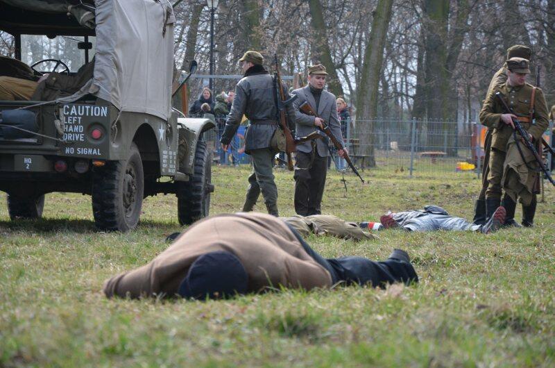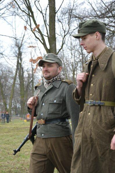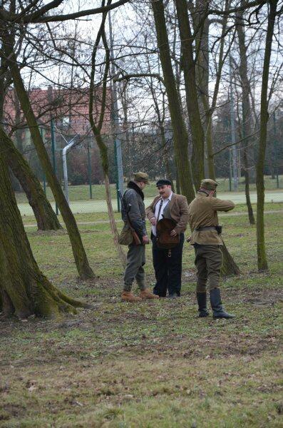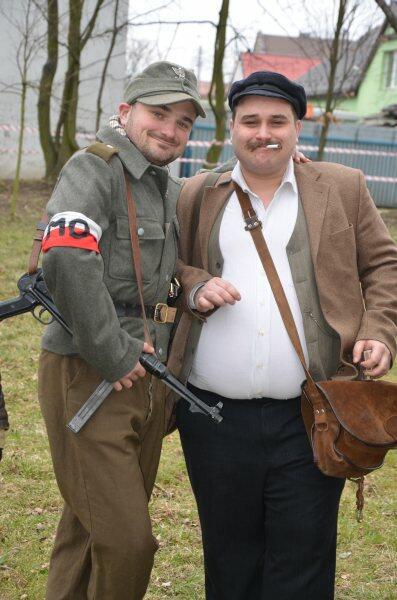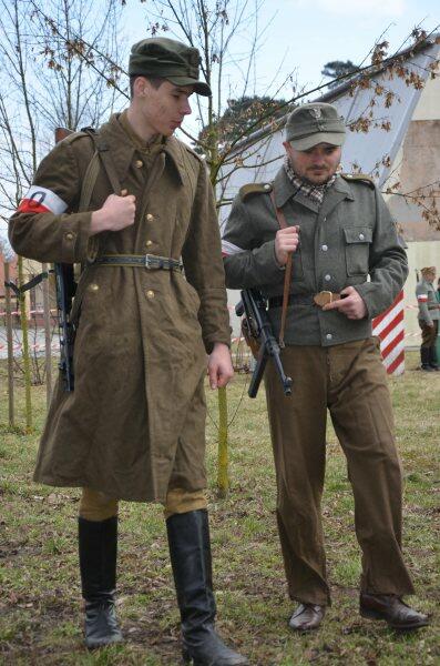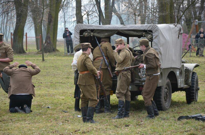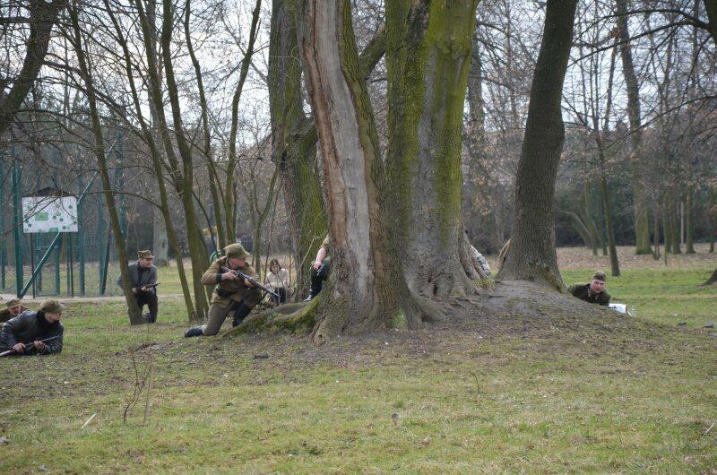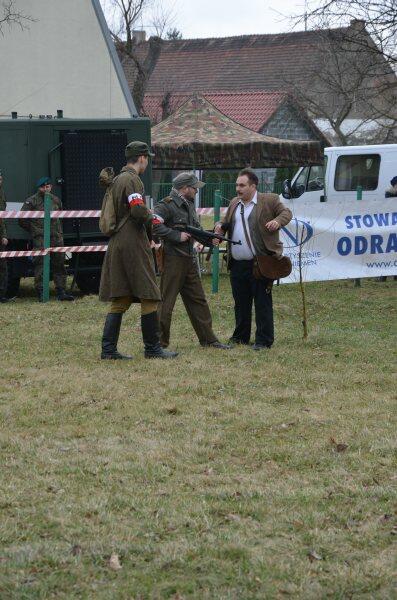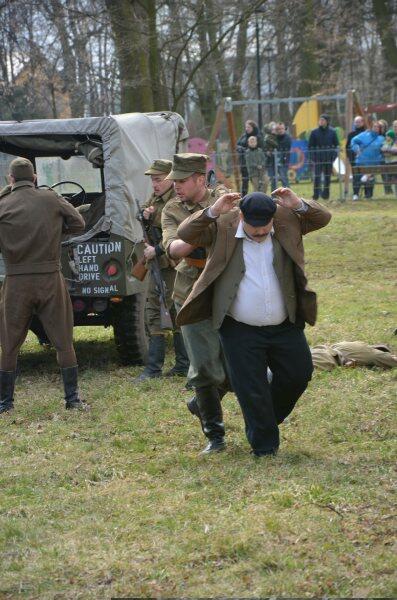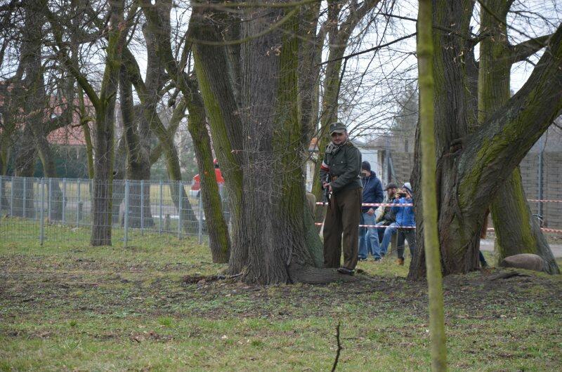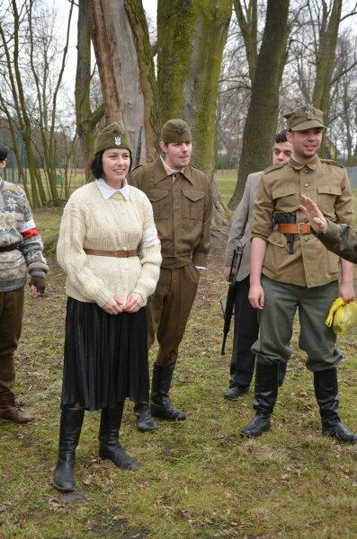 Czarek, już można powiedzieć tradycyjnie, został narratorem, a nasi znajomi z innych grup, jak i naszej, realizowali scenariusz: konfident poinformował służby bezpieczeństwa o miejscu , gdzie przebywa oddział partyzantów. Jak się domyślacie odbyła się walka w której zginęło wielu żołnierzy, a cześć została aresztowana. Kolejnym punktem rekonstrukcji było odbicie więźniów.