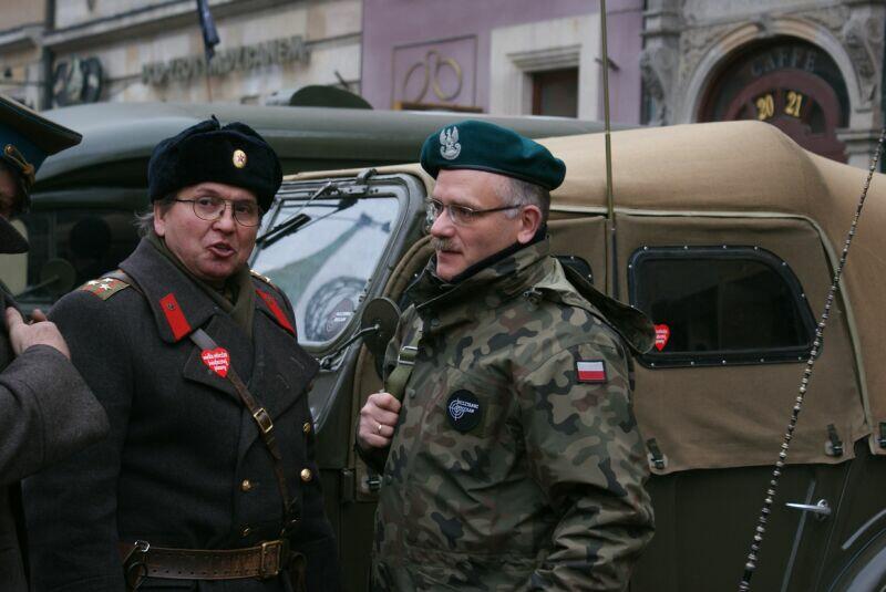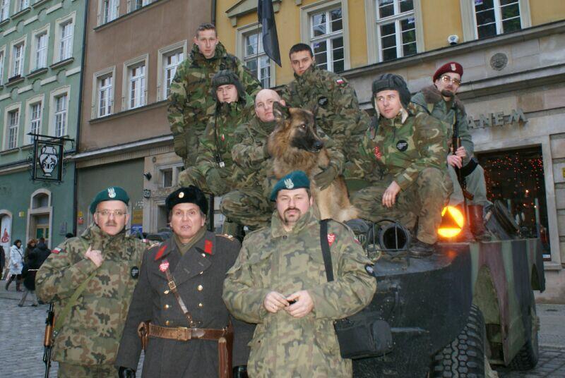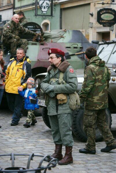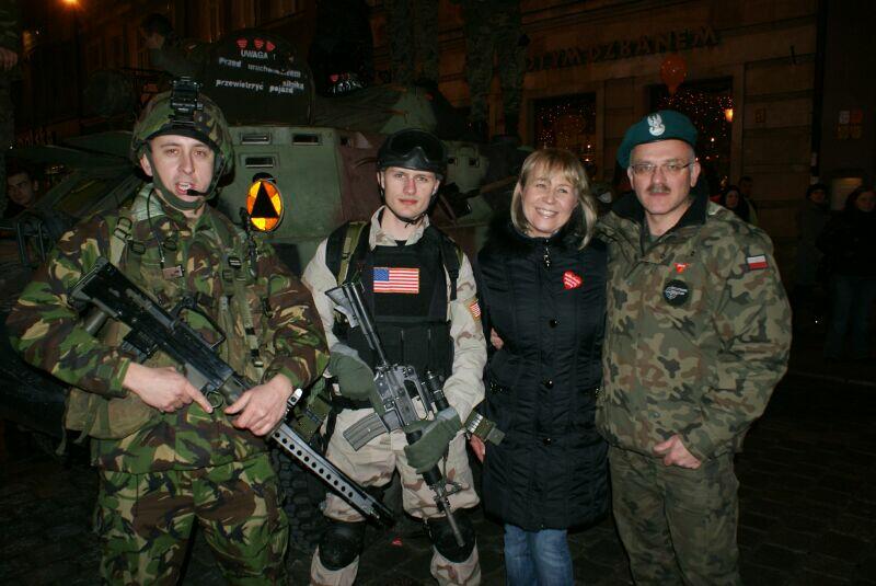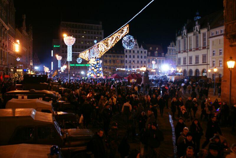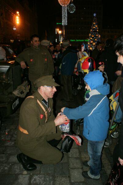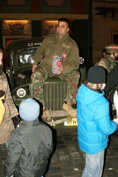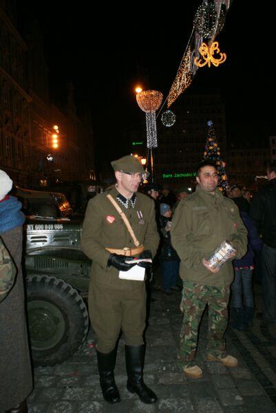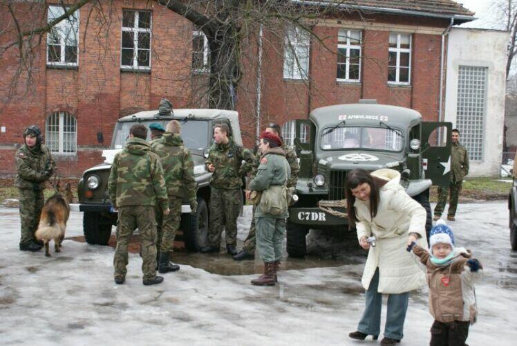 Około godziny 13, zwartą kolumną przemieściliśmy się do Rynku. Stanęliśmy przy Ratuszu i kwestowaliśmy tam do godziny 20. Oprócz tego prezentowaliśmy współczesne i historyczne mundury wojskowe wraz z wyposażeniem oraz nasze militarne pojazdy. Załoga BRDMa (Tomek i Jacek oraz Hasan) wraz z pozostałą ekipą (Dawid, Bartek, Mariusz i czasami koledzy z ASG) ze szczególnym zaangażowaniem przyjmowali wszystkich chętnych, którzy chcieli zrobić sobie pamiątkowe zdjęcie na transporterze (głównie dzieci). Był to także niewątpliwie wielki dzień Gienka (w mundurze żołnierza Wojska Polskiego z 1939 r.) - najbardziej wytrwale zbierał datki na Orkiestrę. Asystował Mu Tomek z pięknym drugowojennym ambulansem marki Dodge. Inni rówież dzielnie pracowali cały dzień: Michał, który przybył do nas aż z Krakowa i prezentował umundurowanie moro US, Maciek – fotograf, Bogdan w mundurze historycznym oraz Czarek „spinający" całość naszego udziału w imprezie. No i oczywiście dziękujemy paniom: Joli za wspaniały bigos, a Agnieszce za pyszne ciasto.