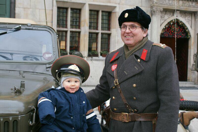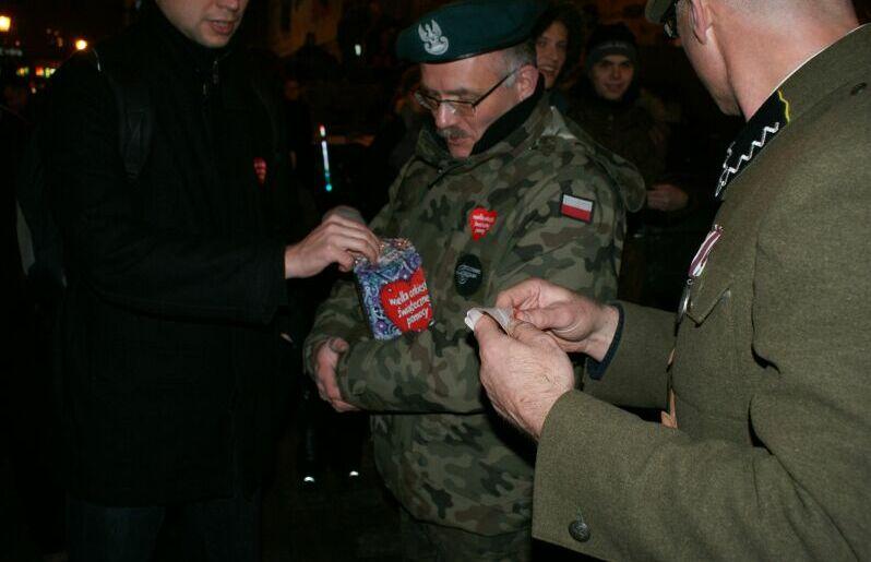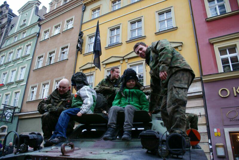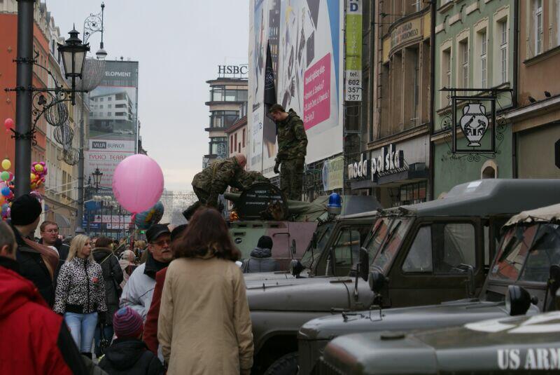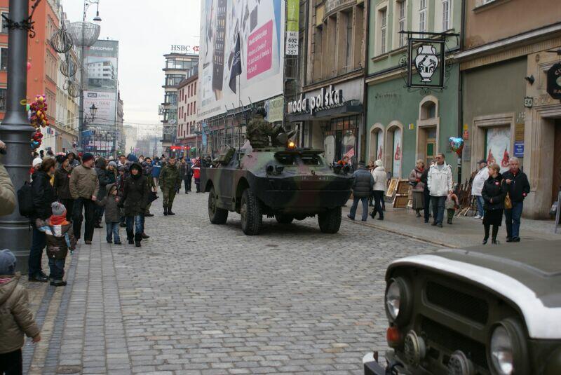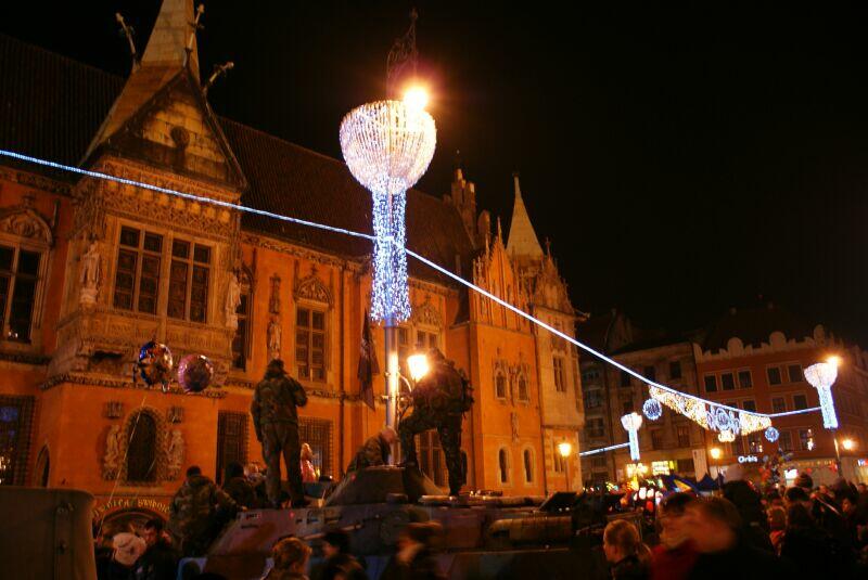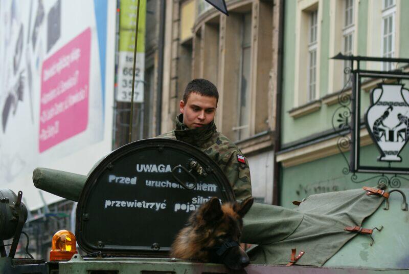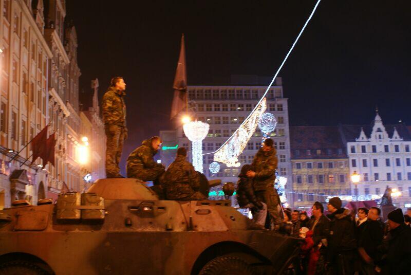 Około godziny 13, zwartą kolumną przemieściliśmy się do Rynku. Stanęliśmy przy Ratuszu i kwestowaliśmy tam do godziny 20. Oprócz tego prezentowaliśmy współczesne i historyczne mundury wojskowe wraz z wyposażeniem oraz nasze militarne pojazdy. Załoga BRDMa (Tomek i Jacek oraz Hasan) wraz z pozostałą ekipą (Dawid, Bartek, Mariusz i czasami koledzy z ASG) ze szczególnym zaangażowaniem przyjmowali wszystkich chętnych, którzy chcieli zrobić sobie pamiątkowe zdjęcie na transporterze (głównie dzieci). Był to także niewątpliwie wielki dzień Gienka (w mundurze żołnierza Wojska Polskiego z 1939 r.) - najbardziej wytrwale zbierał datki na Orkiestrę. Asystował Mu Tomek z pięknym drugowojennym ambulansem marki Dodge. Inni rówież dzielnie pracowali cały dzień: Michał, który przybył do nas aż z Krakowa i prezentował umundurowanie moro US, Maciek – fotograf, Bogdan w mundurze historycznym oraz Czarek „spinający" całość naszego udziału w imprezie. No i oczywiście dziękujemy paniom: Joli za wspaniały bigos, a Agnieszce za pyszne ciasto.