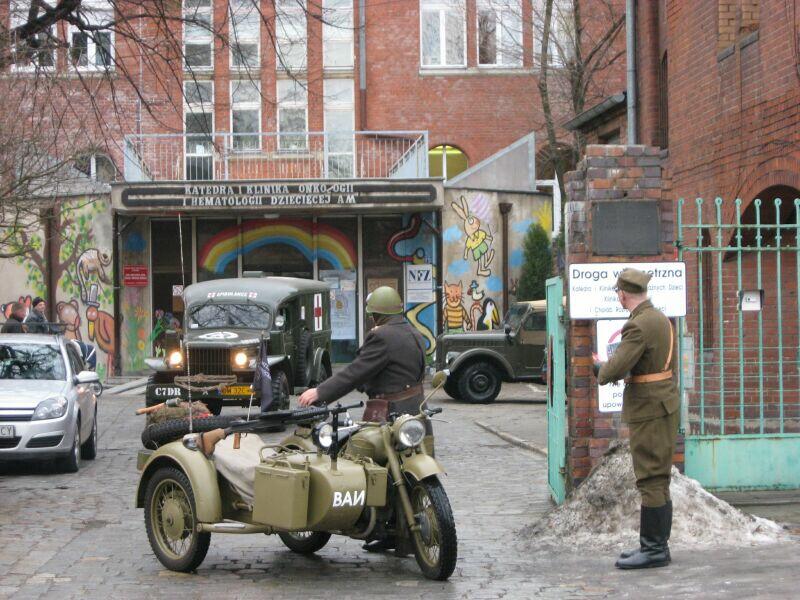 Grupa Militarni Wrocław wraz z Przyjaciółmi rozpoczęła XIX Finał Wielkiej Orkiestry Świątecznej Pomocy od odwiedzin w Klinice Hematologii i Onkologii przy ul. Bujwida. Przy bramie wjazdowej do Szpitala Bogdan i Gienek utworzyli punkt kontrolny, na którym nie tylko zbierali datki, ale również zapraszali do oglądania pojazdów militarnych, które zaparkowały na dziedzińcu szpitala.